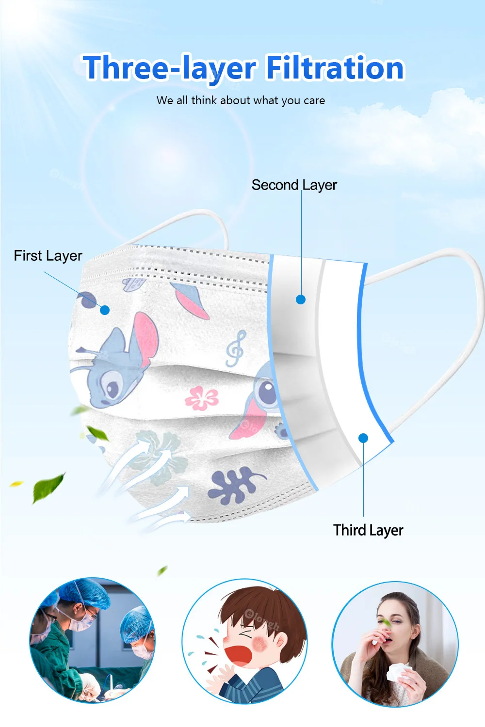 10/50/100/200pcs * Disposable breathable masks 3 layer filter