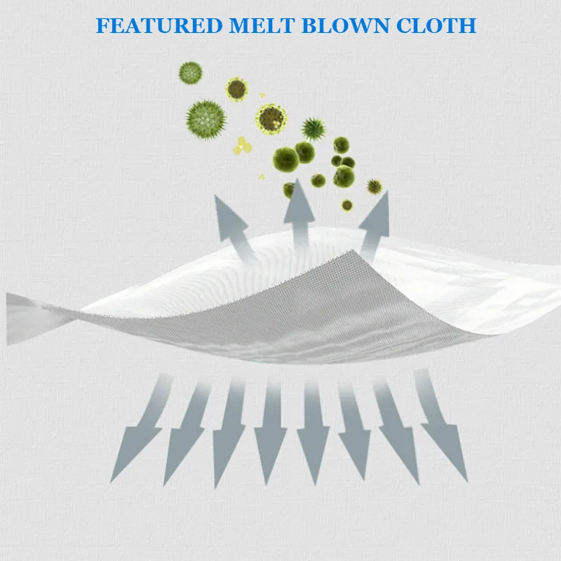 Material:Non woven fabric + melt blown fabric, high-end Spunlaced fabric, thickened type