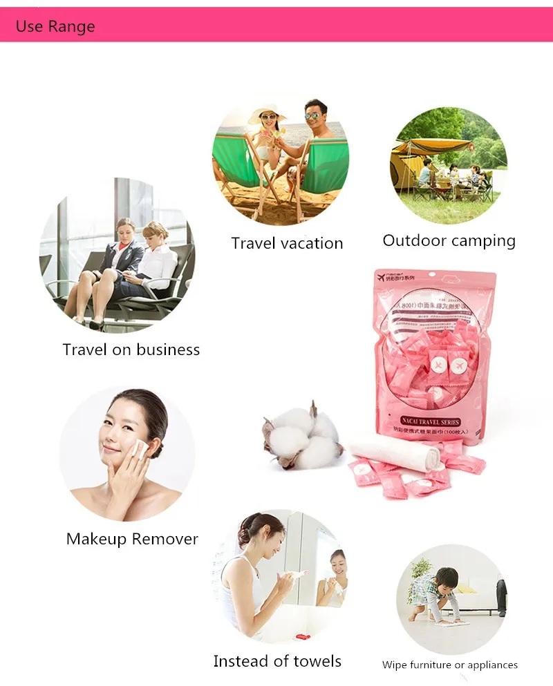 Disposable Pure Cotton Compressed Face Towel, great for travel, camping and health hygiene.