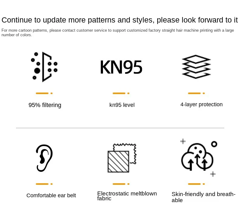 Storage method:It is recommended to store in a dry, ventilated and non-corrosive gas, away from direct sunlight and away from fire sources or flammable materials.Mask features: