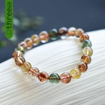 Unisex Natural Brazil Copper Rutilated Quartz Crystal Bracelet