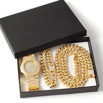 Gold / Silver Necklace+Watch+Bracelet Iced Hip-Hop Style Jewelry Set