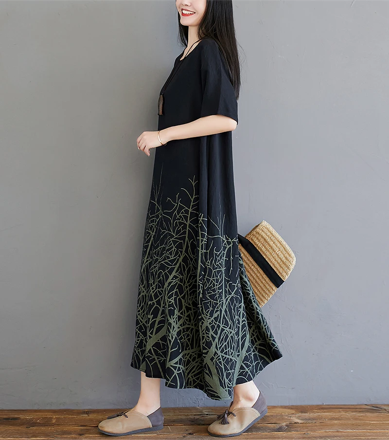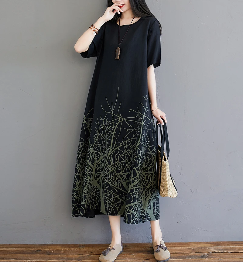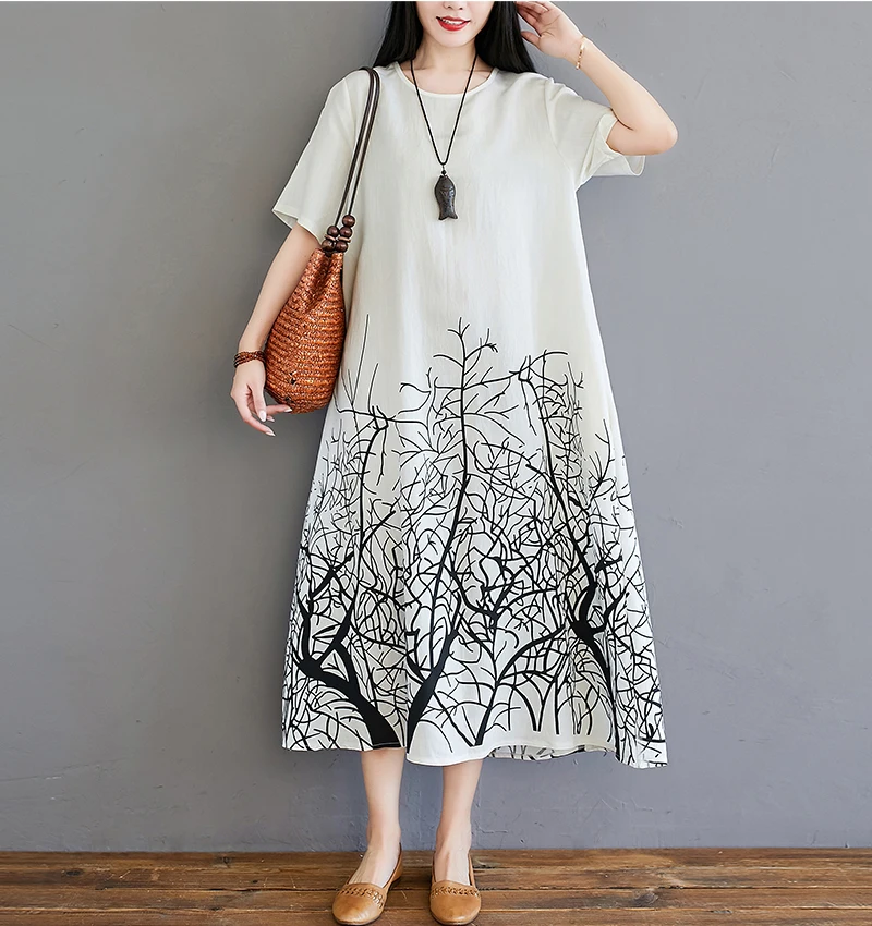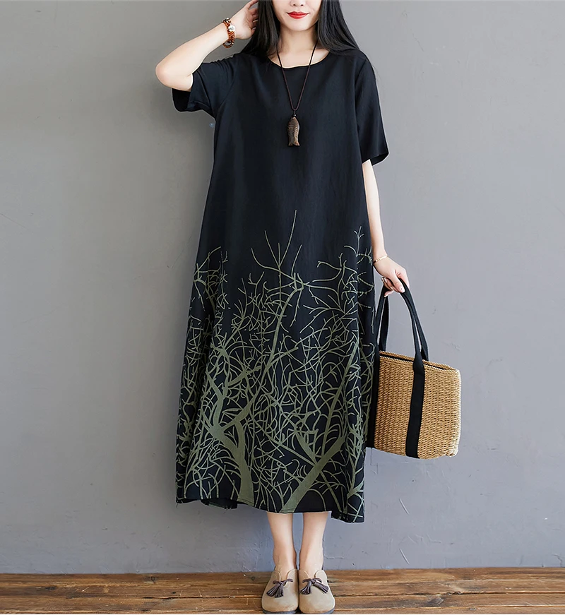 Oladivi Oversized Short Sleeve Fashion Print Long Dress Women Summer 2021 New Casual Loose Dresses Big Tunics Robe Vestidios XXL